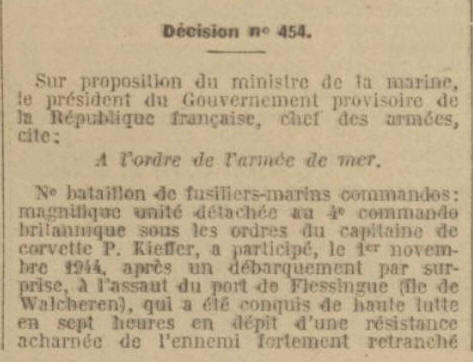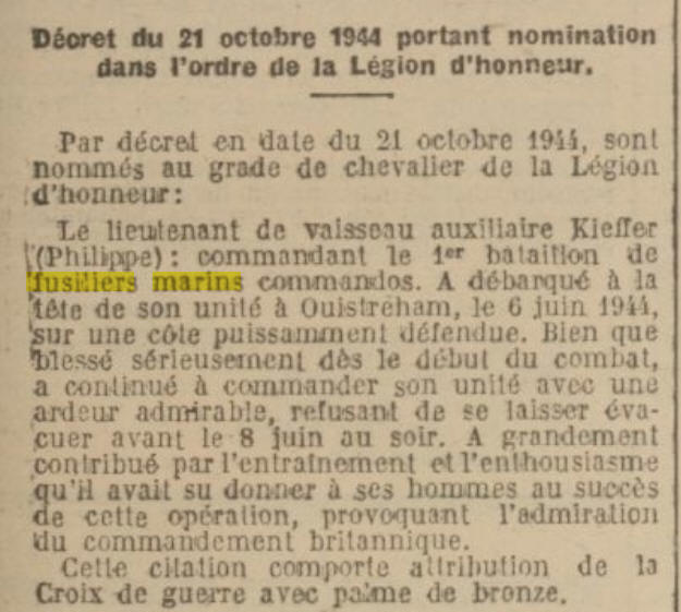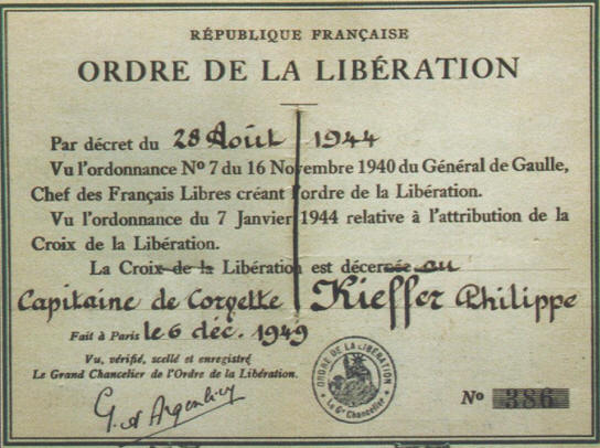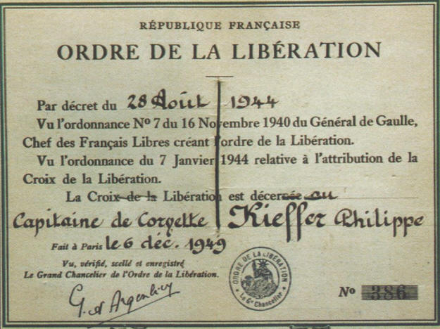 En 1944 les efforts du commandant Kieffer sont récompensés.