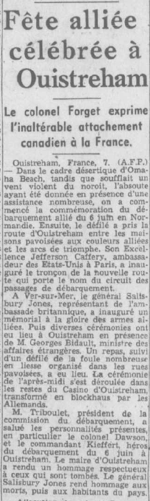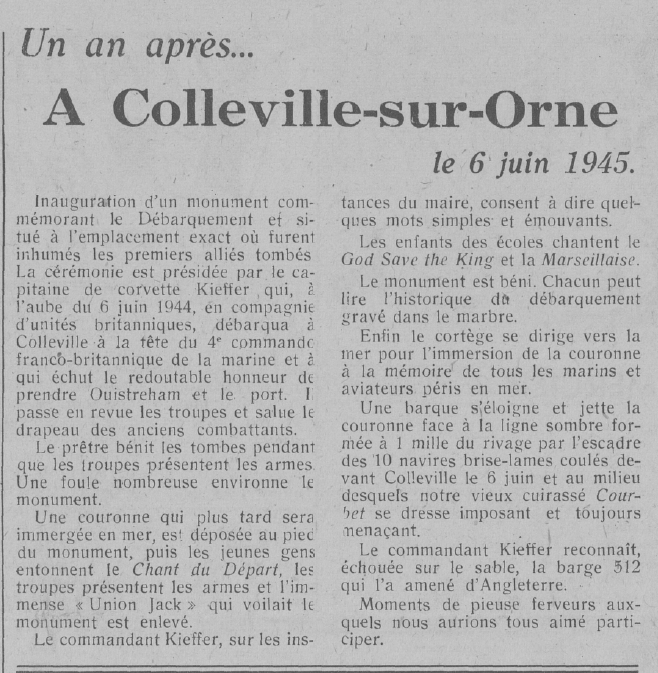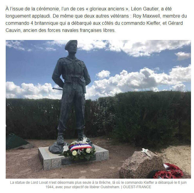 à l’origine de la libération d’Ouistreham le 6 juin 1944. « Après