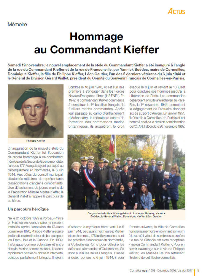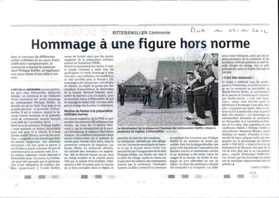 Hommage au Cdt Kieffer suite à l'annonce de son décès