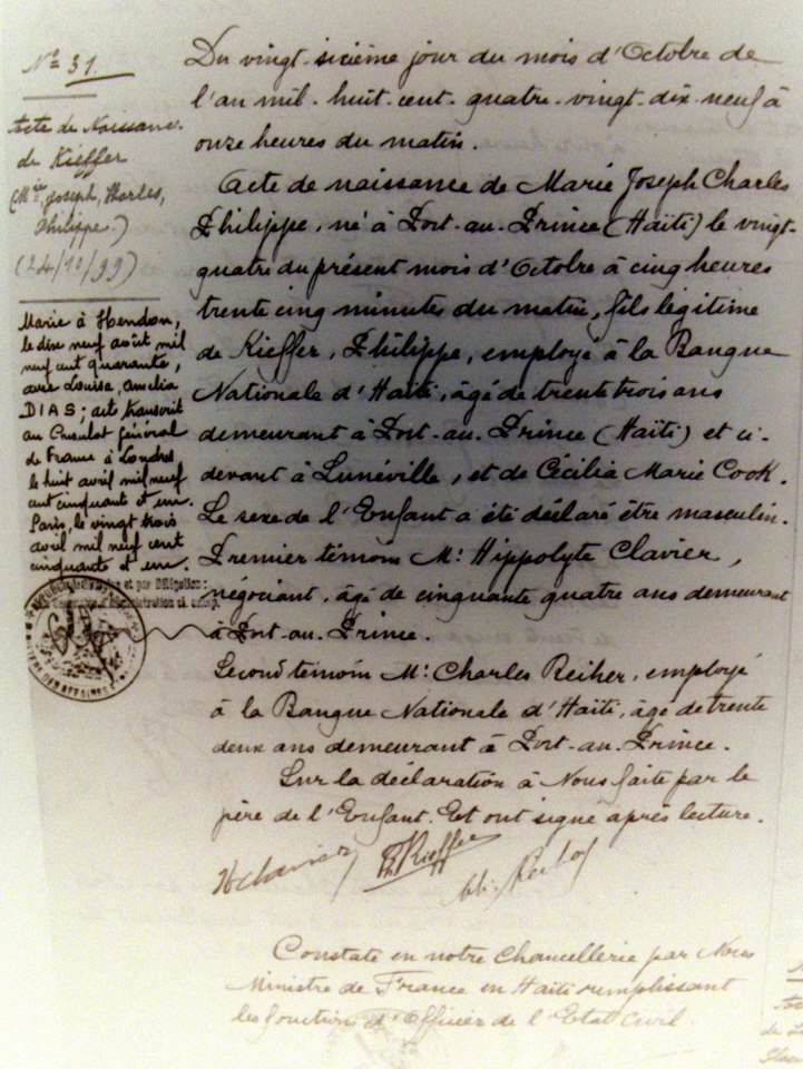 Un fils, Claude, né le 7 septembre 1923 à Port au Prince