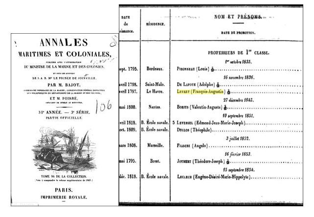 En 1836, professeur de sciences à l’Ecole navale à bord de l’ORION
