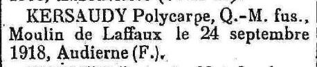 Mentionné sur le monument aux Morts d'Audierne (Finistère)