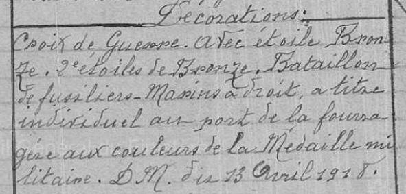 "Excellent soldat et brave, a pris une part active aux opérations du