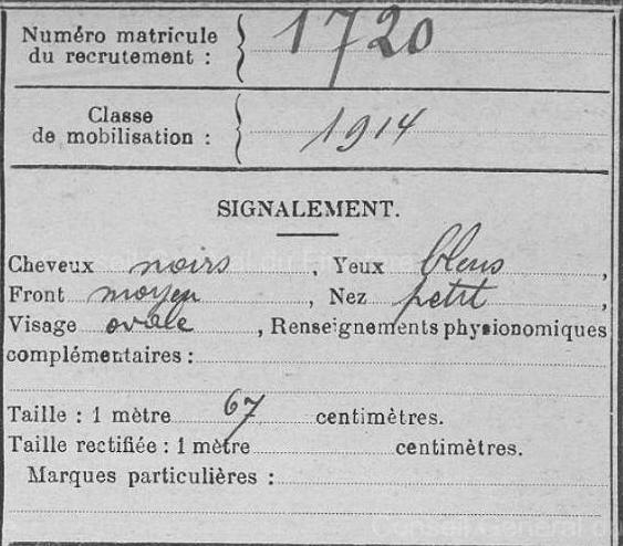 Matricule au recrutement : 1720 - Quimper (Finistère)