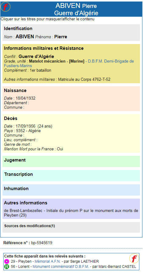 LAMBEZELLEC (Aujourd'hui quartier de BREST) (Finistère) - Décédé le