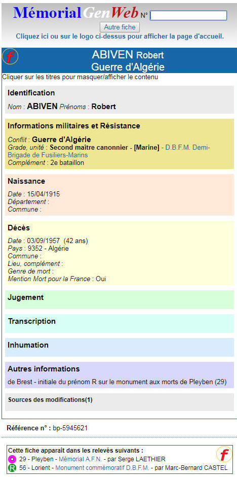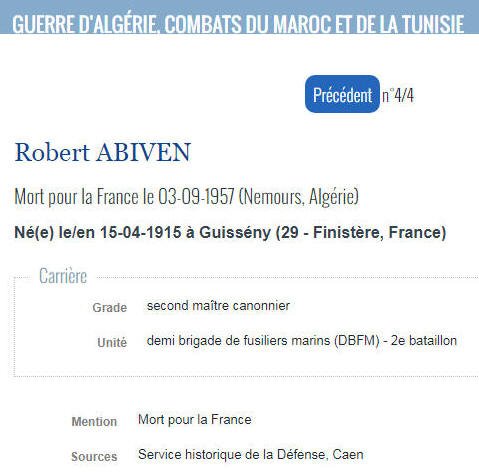 GUISSENY (Finistère) - Décédé le 3 septembre 1957 à NEMOURS