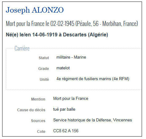 DESCARTES (Algérie) - Décédé le 2 février 1945 à PEAULE (Morbihan)