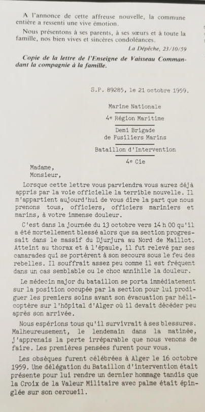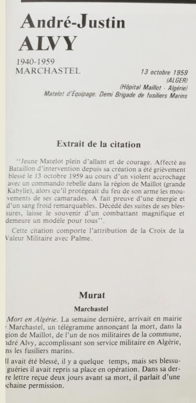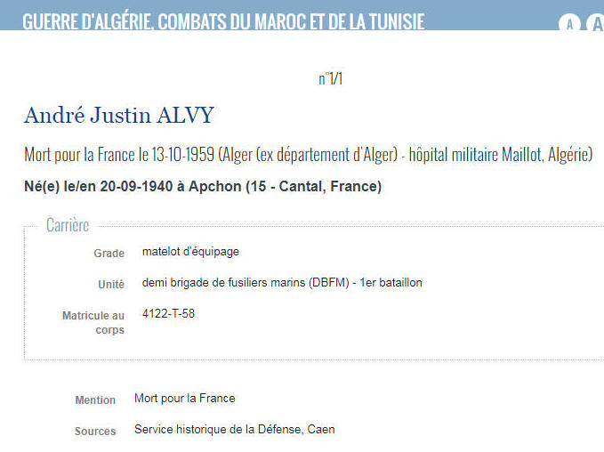 à APCHON (Cantal) - Décédé le 13 octobre 1959 à NEMOURS (Algérie)