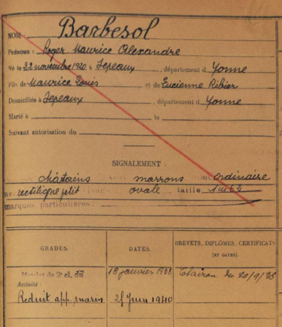 né en 1892 à SEPEAUX (Yonne), décédé à JOIGNY (Yonne) le 1er