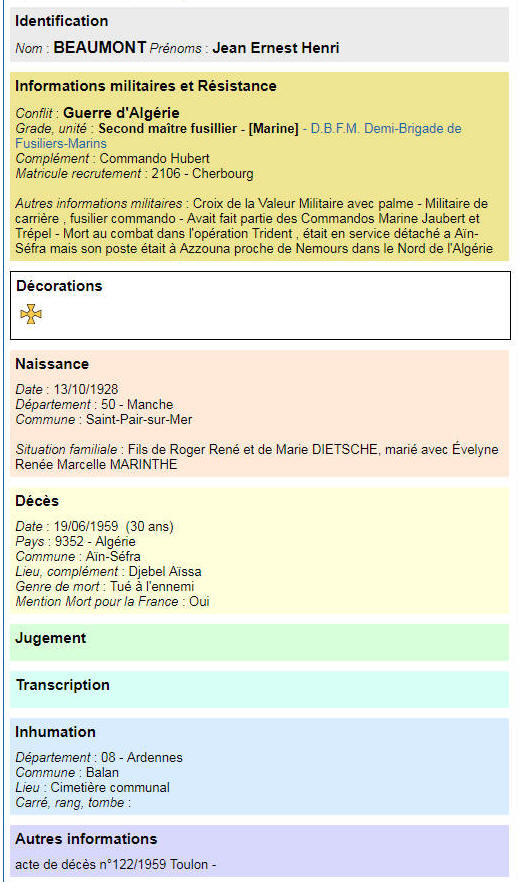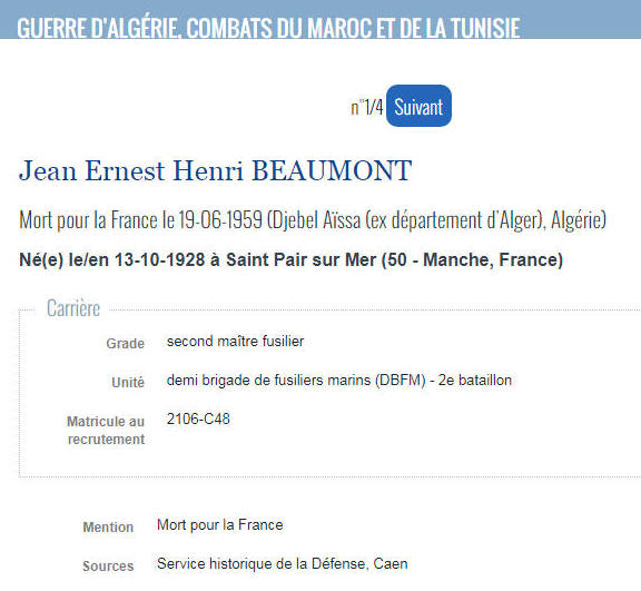 PAIR sur MER (Manche) - Décédé le 19 juin 1959 à DJEBEL AÏSSA