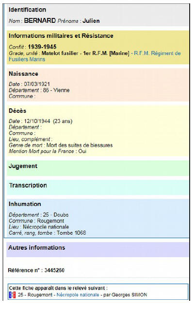 Né le 7 mars 1921 à VAUX (Vienne) - Décédé le 12 octobre 1944
