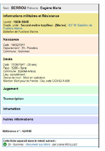 Son décès est inscrit à la commune de Le Guilvinec - 18 septembre