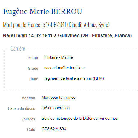 Né le 14 février 1911 à LE GUILVINEC (Finistère) - Décédé le 17 juin