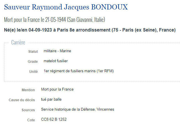 Né le 4 septembre 1923 à PARIS VIIIe (Seine) - Décédé le 21 mai 1944 à SAN