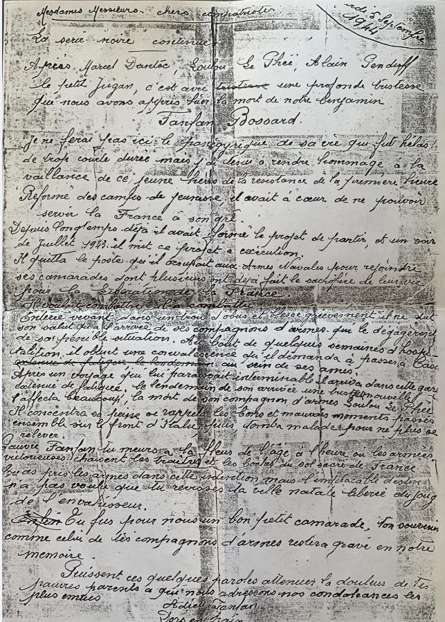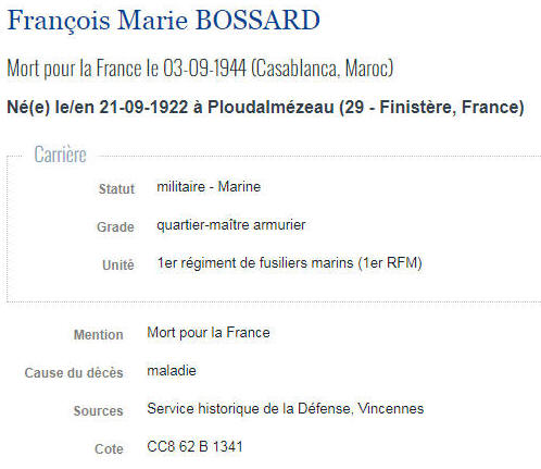 Né le 21 septembre 1922 à PLOUDALMEZEAU (Finistère) - Décédé le 3