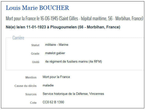 l’hôpital maritime de SAINT GILLES (Morbihan) le 16 juin 1945.