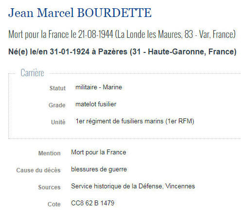 Né le 31 janvier 1924 à CAZERES (Haute Garonne) - Décédé le 21 août