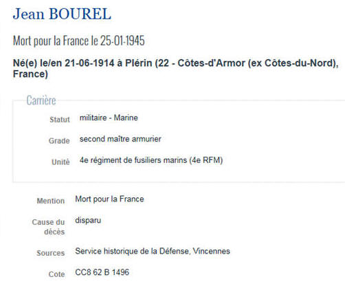 PLERIN (Cotes d’Armor) - Décédé le 25 janvier 1945 au