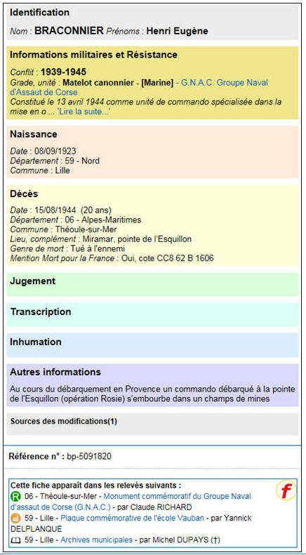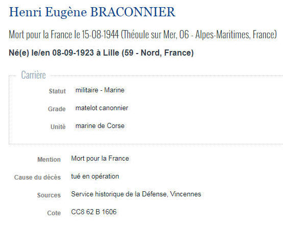 à LILLE (Nord) - Décédé le 15 août 1944 au Cap de l'Esquillon,