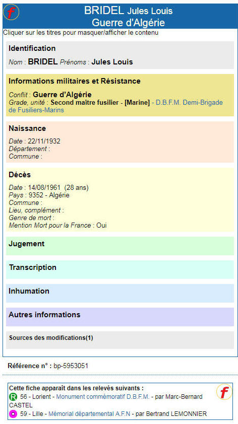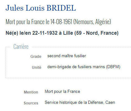 à LILLE (Nord) - Décédé le 14 août 1961 à NEMOURS (Algérie)