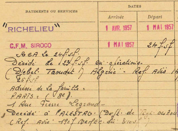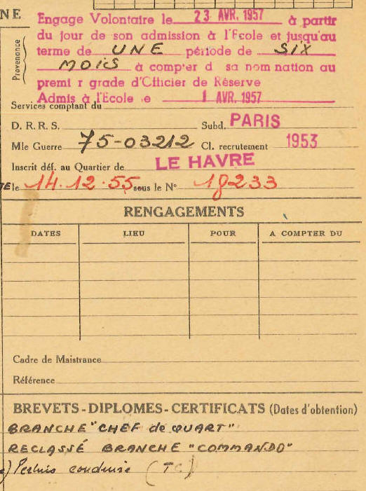 nom à l'Ecole des Fusiliers Marins du 1er décembre 1958 au 1er mai
