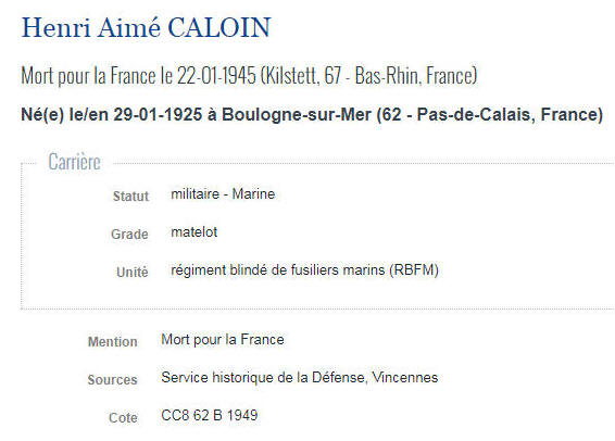 BOULOGNE sur MER (Pas de Calais) - Décédé le 22 janvier 1945 à