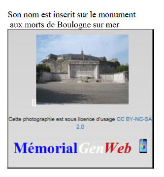né à ETAPLES (Pas de Calais) le 11 octobre 1887, décédé le 9 mai