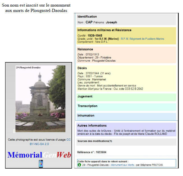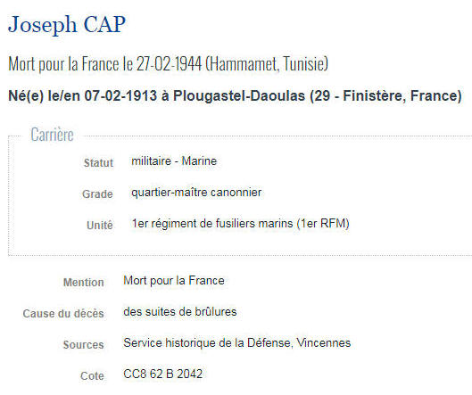 Né le 7 février 1913 à PLOUGASTEL DAOULAS (Finistère) - Décédé le 27