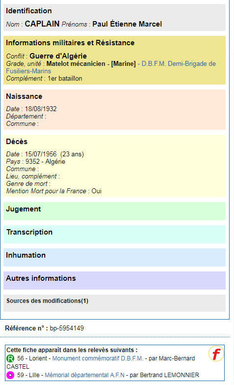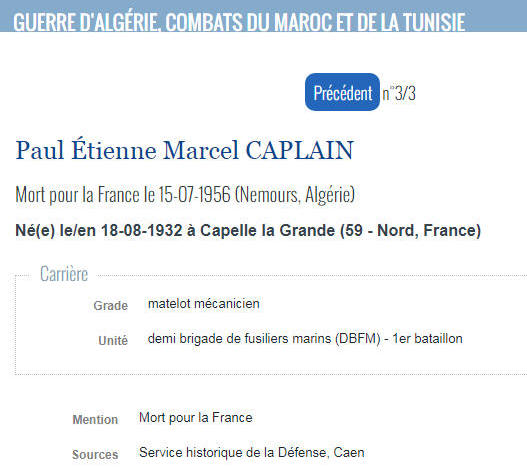 CAPPELLE la GRANDE (Nord) - Décédé le 15 juillet 1956 à NEMOURS