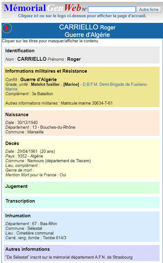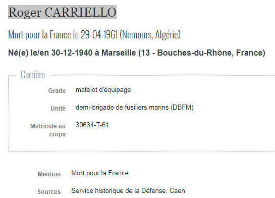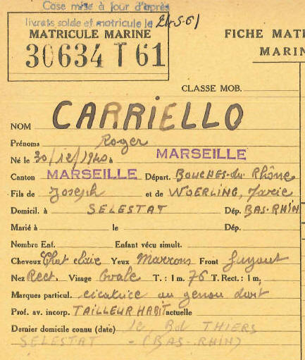 à MARSEILLE (Bouches du Rhône) - Décédé le 29 avril 1961 à NEMOURS