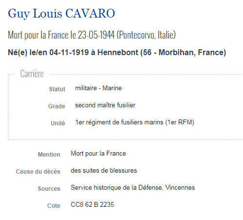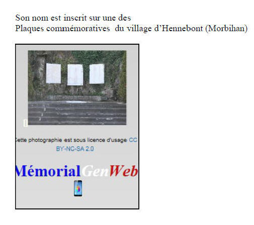 Né le 4 novembre 1919 à HENNEBONT (Morbihan) - Décédé le 23 mai 1944