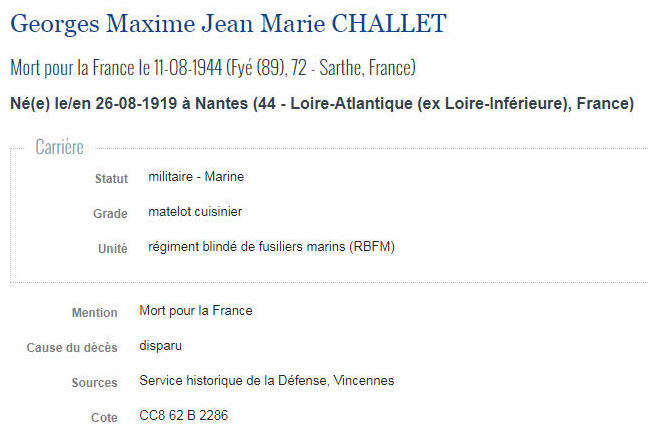 fait prisonnier et sauvagement exécuté ; le matelot Georges Challet
