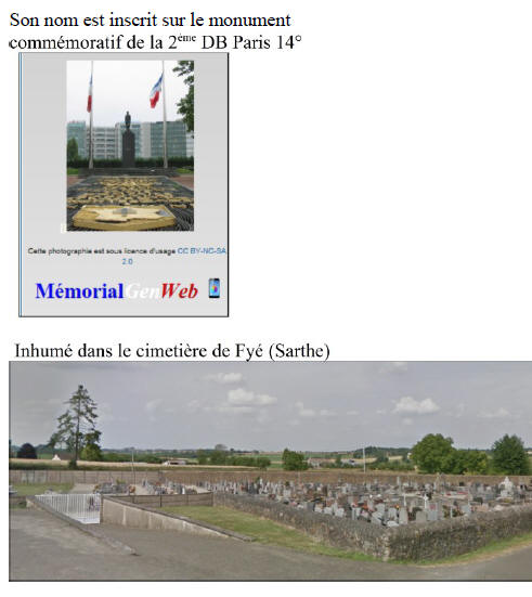 NANTES (Loire Atlantique) - Décédé le 11 août 1944 à FYE (Sarthe)