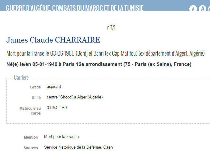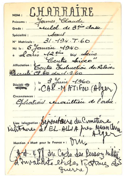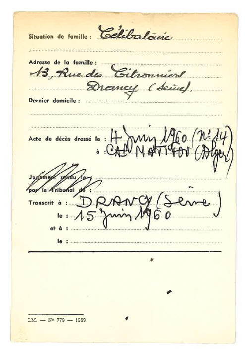 PARIS XIIe (Seine) - Décédé le 3 juin 1960 à BORDJ el