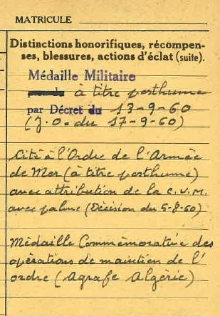 de cours BAT porte son nom à l'Ecole des Fusiliers Marins de Lorient