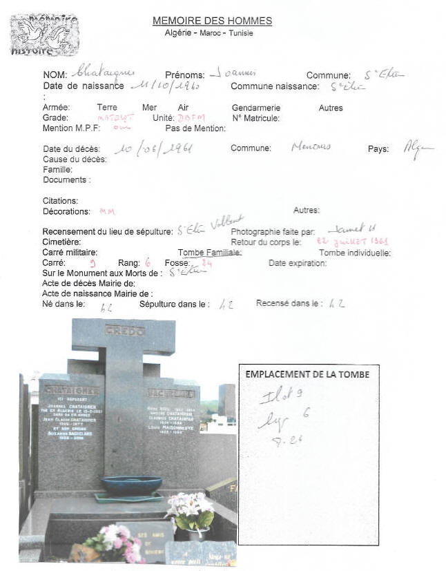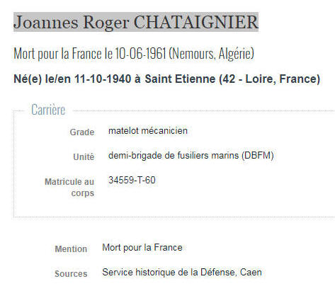 SAINT ETIENNE (Loire) - Décédé le 10 juin 1961 à NEMOURS (Algérie)