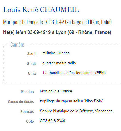 Né le 3 septembre 1919 à LYON IXe (Rhône) - Décédé le 17 août 1942