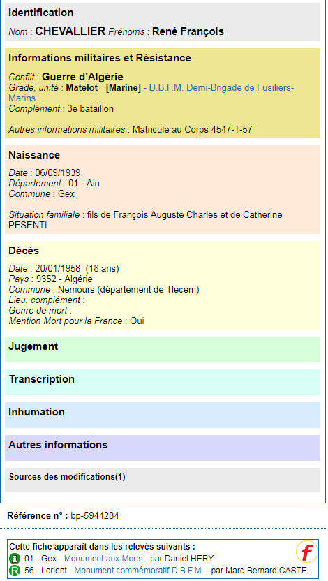 à GEX (Ain) - Décédé le 20 janvier 1958 à NEMOURS