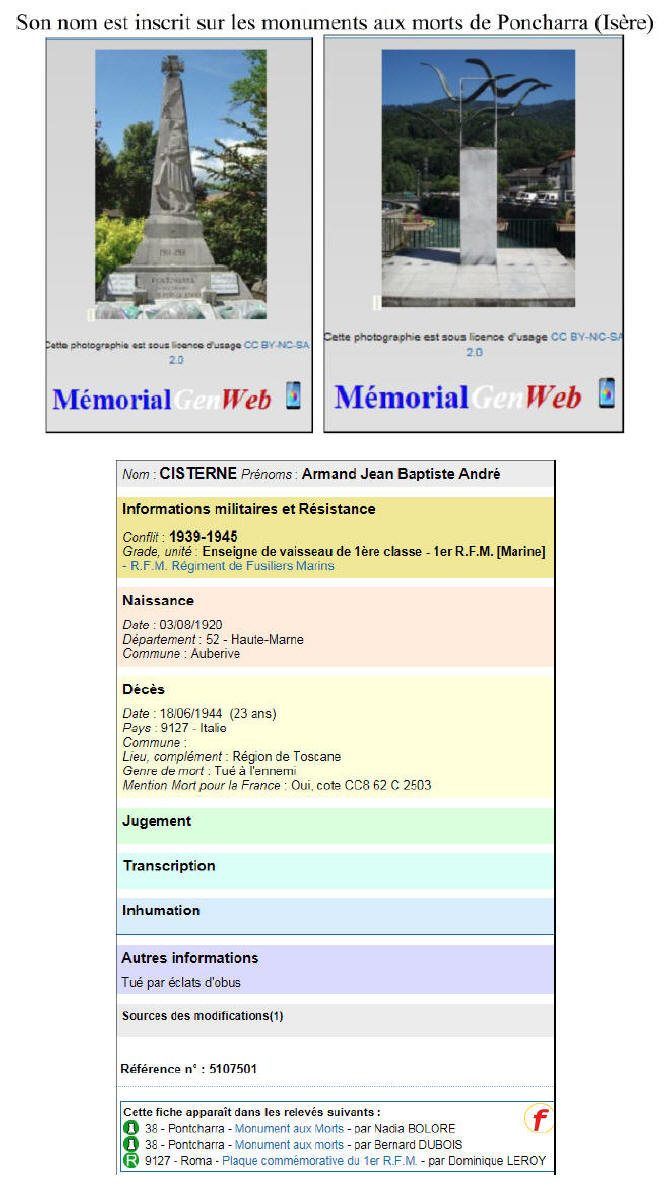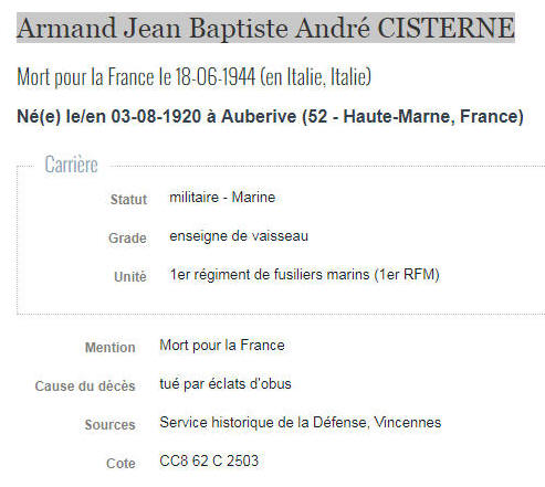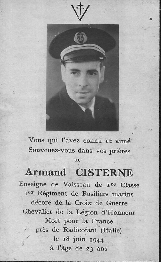 du 8 avril 1945), l'enseigne de vaisseau Cisterne a été nommé