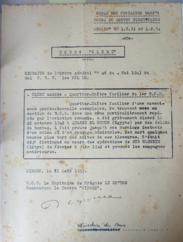 A donné son nom à un cours de l'Ecole des fusiliers marins de