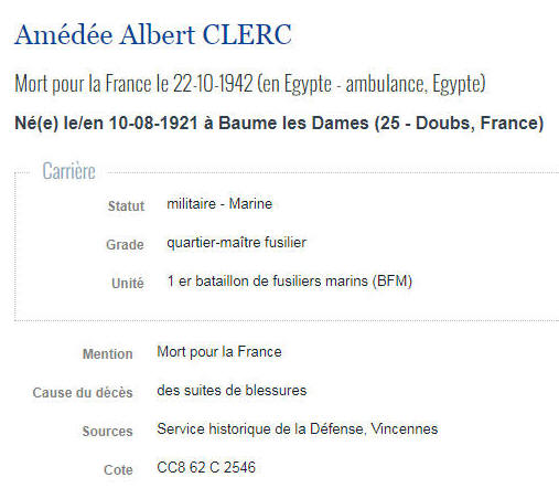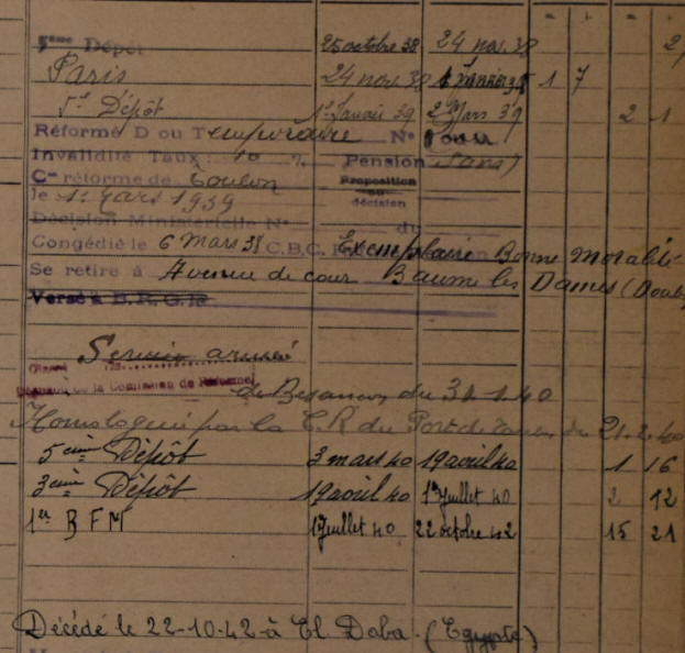 octobre 1943 sur le livre des morts du 1er RFM, le 22 sur son acte