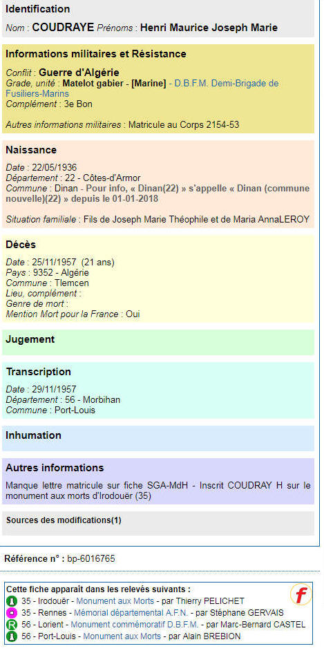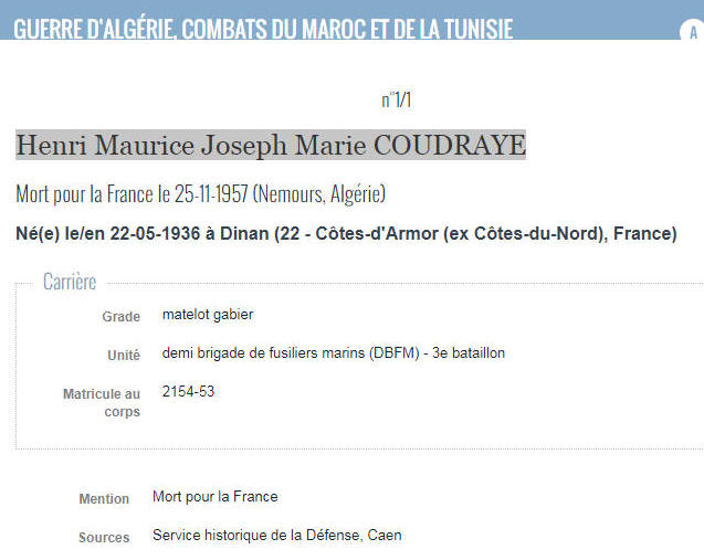 DINAN (Côtes d'Armor) - Décédé le 25 novembre 1957 à NEMOURS