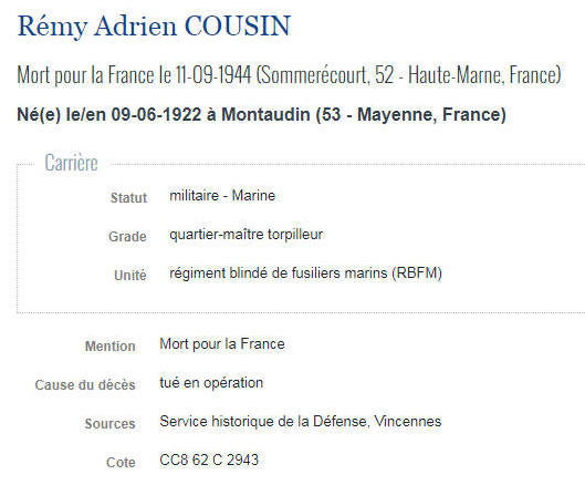 MONTAUDIN (Mayenne) - Décédé le 11 septembre 1944 à SOMMERECOURT