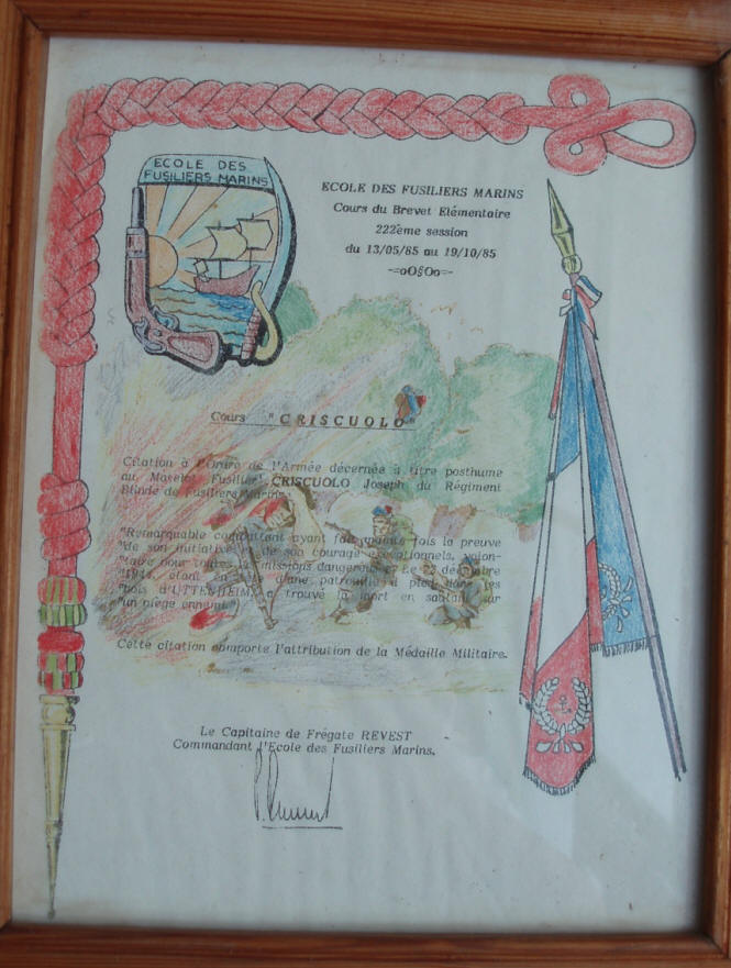 Son nom fut donné à un cours à l'Ecole des fusiliers marins de