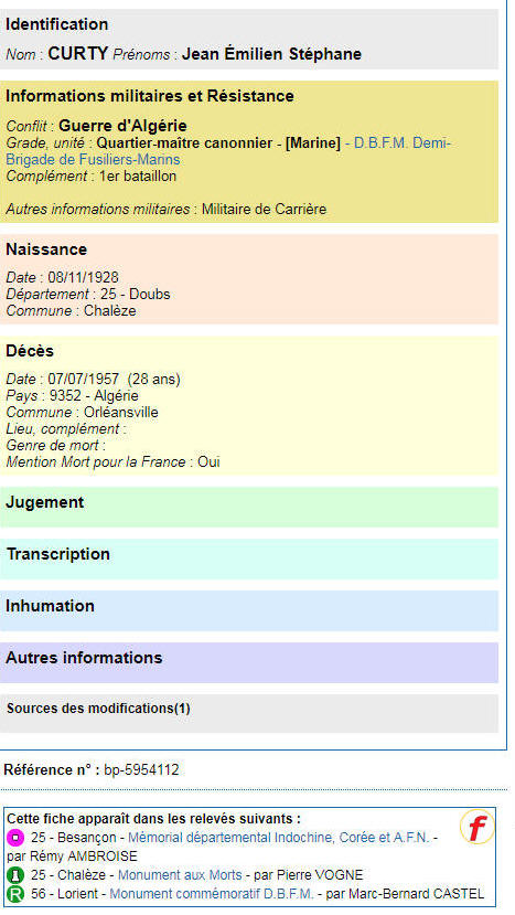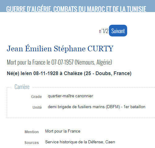 CHALEZE (Doubs) - Décédé le 7 juillet 1957 à NEMOURS (Algérie)