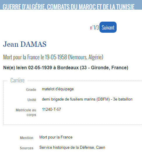 BORDEAUX (Gironde) - Décédé le 19 mai 1958 à NEMOURS (Algérie)
