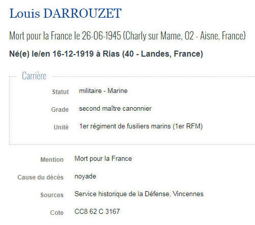 Né le 16 décembre 1919 à BIAS (Landes) - Décédé le 26 juin 1945 à