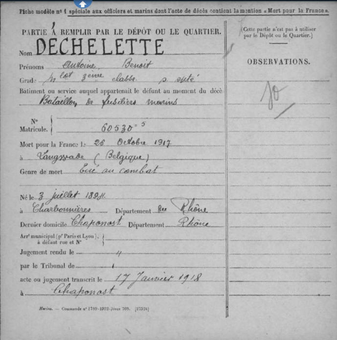 CHARBONNIERES les BAINS (Rhône) - Décédé le 26 octobre 1917 à