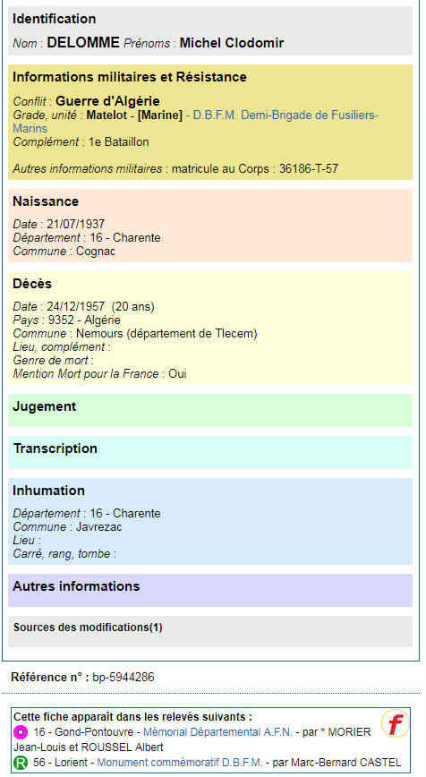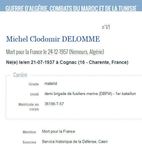 COGNAC (Charente) - Décédé le 24 décembre 1957 à NEMOURS (Algérie)