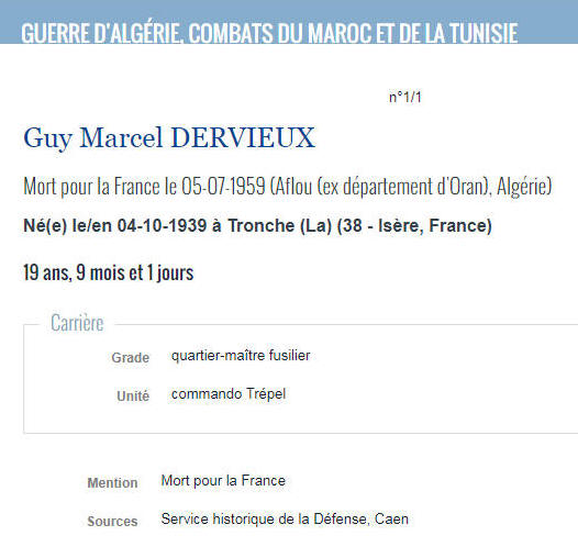 La TRONCHE (Isère) - Décédé le 5 juillet 1959 à AFLOU (Algérie)